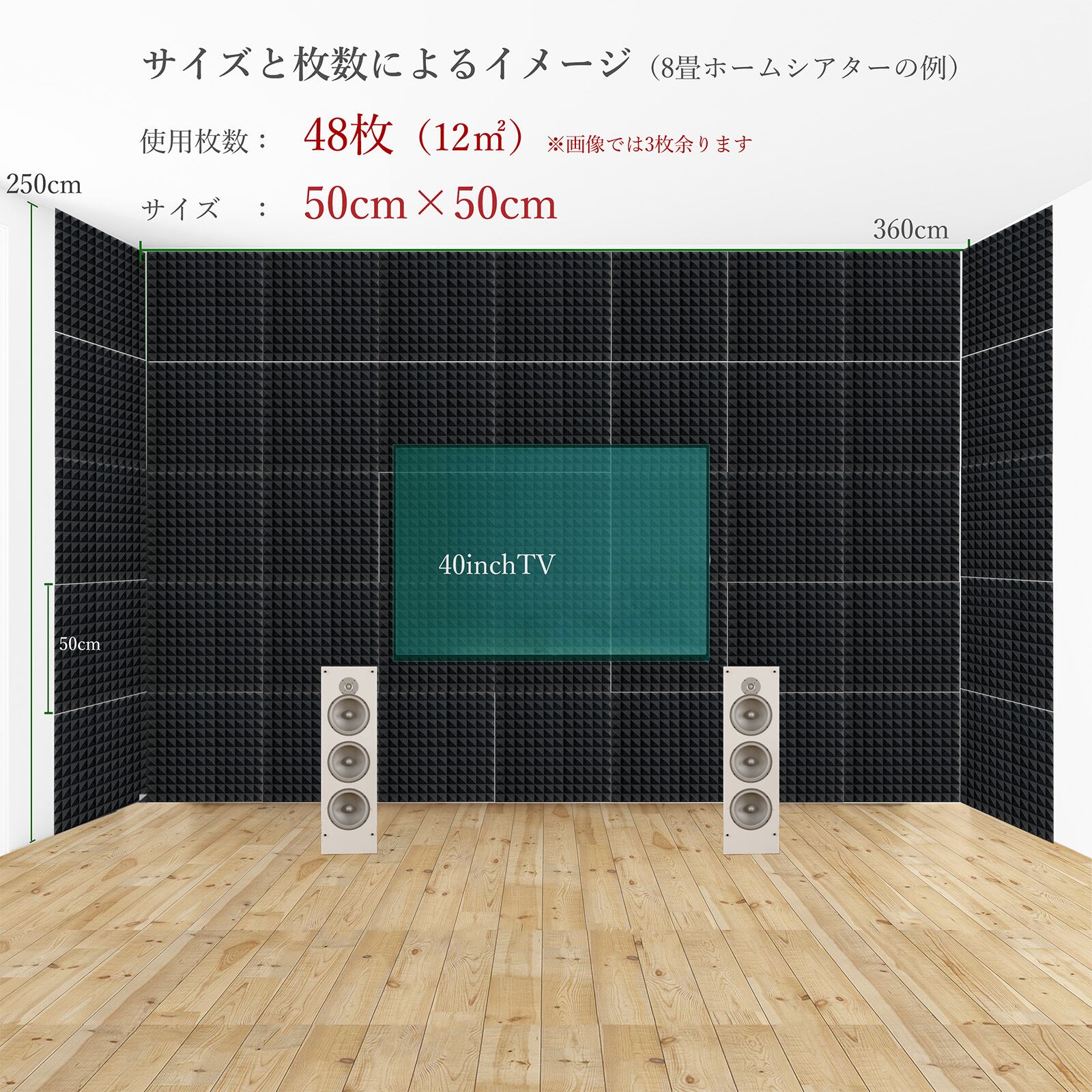 ウレタン吸音材 48枚セット(幅50cm × 50cm 12山)【厚さ5cm】